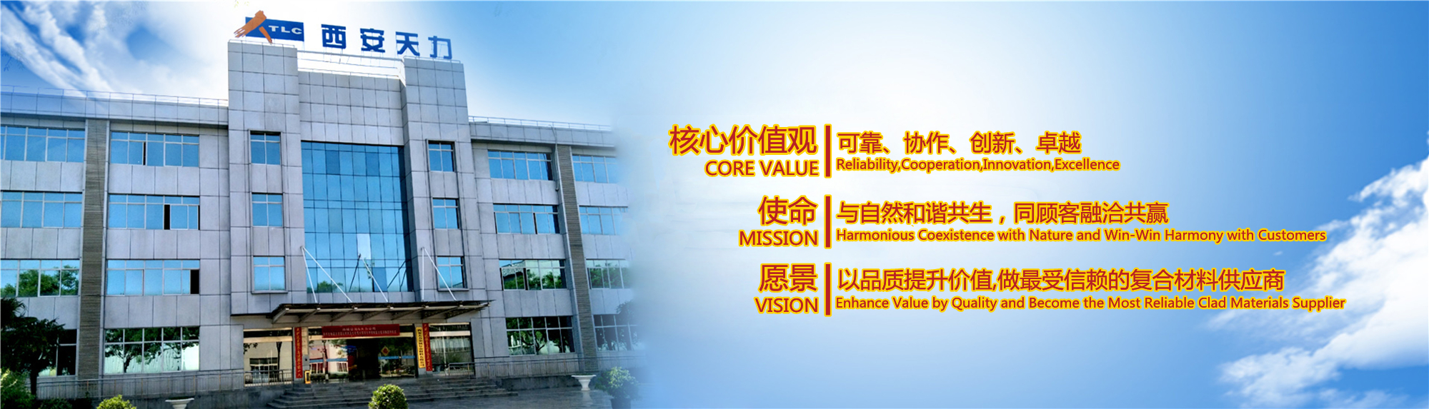 西安天力金屬復合材料股份有限公司是西北有色金屬研究院(集團)產業化上市公司“西部材料”控股的獨立法人公司,是專業從事層狀金屬復合材料研究及生產的高新技術企業,成立于2003年12月25日,位于西安經濟技術開發區涇渭工業園,注冊資本10895萬股,擁有生產廠房23000余平米,各類生產設備200余臺套及兩塊條件優越的爆炸復合場地,形成年產35000噸層狀復合材料的生產加工能力……